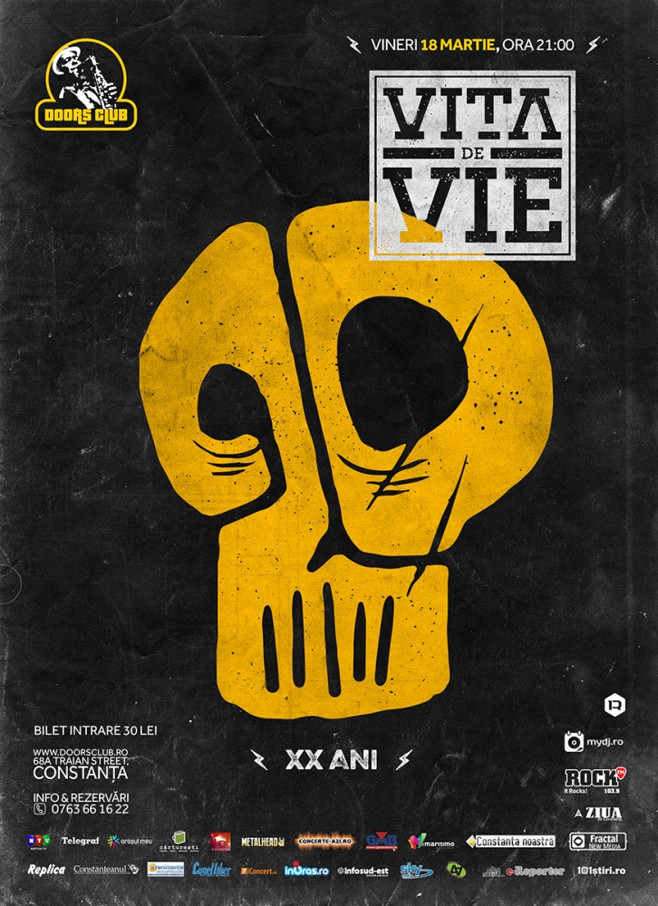 Clubul Doors vă așteaptă vineri, 18 martie, de la ora 21.00, la concertul aniversar 20 de ani cu Vița de Vie. Prețul unui bilet la acest show de senzație este de 30 de lei.