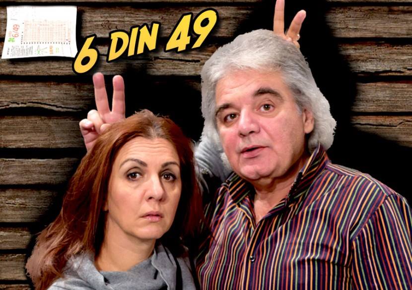 O comedie delicioasă, adaptată după piesa lui Spiro Gyorgy Comedia „6 din 49“, după piesa lui Spiro Gyorgy, prezintă un cuplu de oameni simpli, care sunt puși în fața unui bilet câștigător la Loto, în valoare de câteva milioane de euro. Protagoniștii piesei de teatru, pusă în scenă de Bogdan Caragea, evoluează de la bucurie nemărginită și imaginație bolnavă, până la frică paralizantă sau paranoia avansată. Toate defectele mai vechi sau mai noi ale relației lor ies la suprafață, într-o cavalcadă când comică, când dramatică, ce culminează cu un gest extrem și imprevizibil, pe care iubitorii de teatru îl vor afla doar urmărind spectacolul.