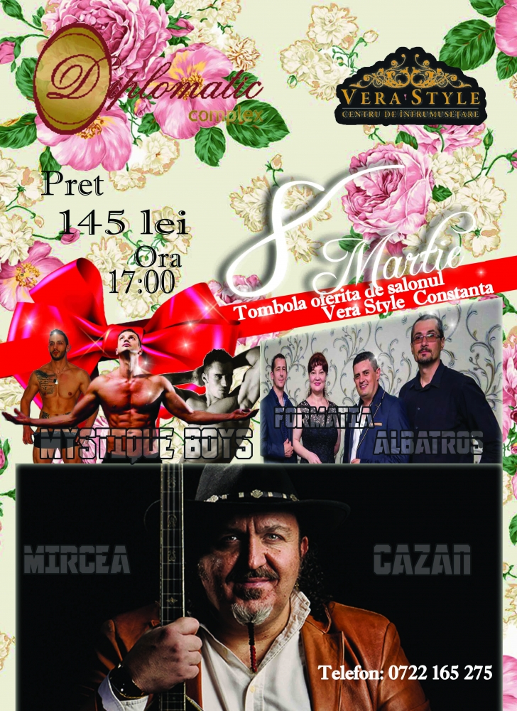 Doamnele și domnișoarele din Constanța se pot pregăti încă de pe acum pentru o seară de răsfăț, în compania unor artiști apreciați și a unei trupe de striptease masculin. Este vorba, desigur, despre seara de 8 Martie, care va fi cu totul specială la Restaurantul Diplomatic - Salon Radiance, unde, de la ora 19.00, se va da startul celei mai explozive petreceri din oraș.