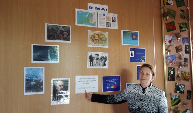 În cadrul evenimentului, profesorul de istorie Mihai Sandu a făcut o scurtă introducere în atmosfera evenimentelor desfășurate în anii 1877, 1945 și 1950, ani ai căror zile de 9 mai au rămas în istorie, în ordinea menționată, ca: Ziua Independenței de Stat a României, Ziua Victoriei și Ziua Uniunii Europene. De asemenea, Mihai Sandu a vorbit despre semnificațiile imnului și steagului Uniunii Europene.