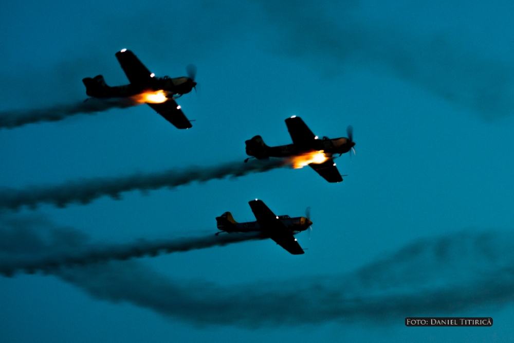 Concerte cu Mihai Mărgineanu, Taxi, Desant şi The R.O.C.K Spectatorii show-ului aviatic de sâmbătă se vor bucura, totodată, și de concertele oferite de Mihai Mărgineanu - fost elev al şcolii de pilotaj Regional Air Services, Taxi, Desant şi The R.O.C.K. Ziua se va încheia, ca de obicei, cu mult aşteptatul spectacol pirotehnic oferit de cele patru avioane jucând rolul de Air Bandits.