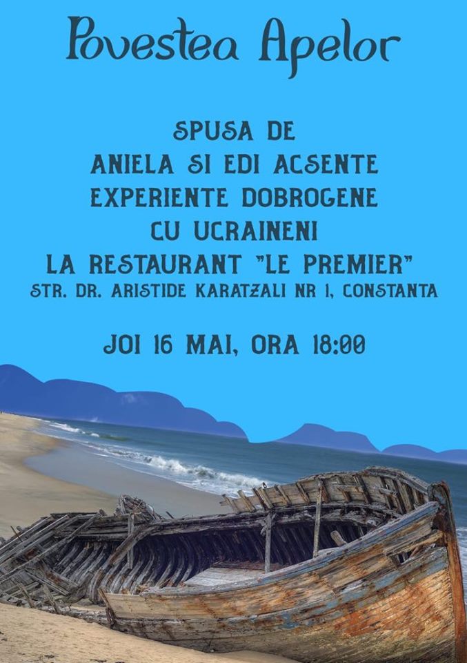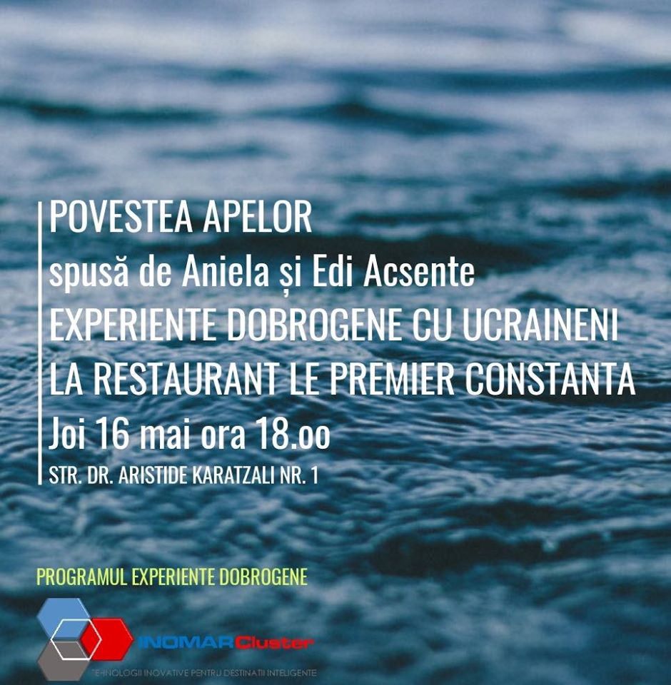 Inițiat de ong-ul Inomar Cluster, proiectul Experiențe Dobrogene descoperă publicului, prin evenimentul “Povestea apelor”, o lume cu povești de demult, învăluite în aromele vinului dobrogean, mâncărurilor tradiționale ale ucrainenilor dobrogeni, istoriei și culturii acestora.