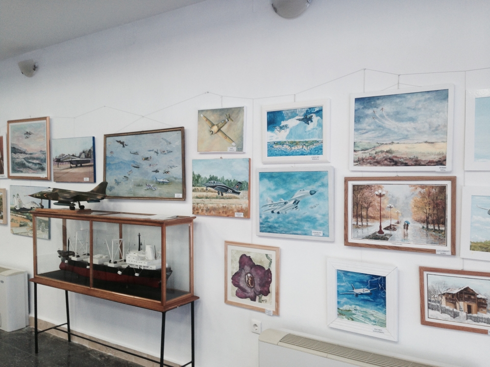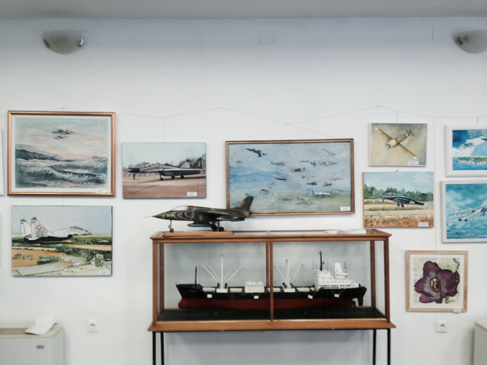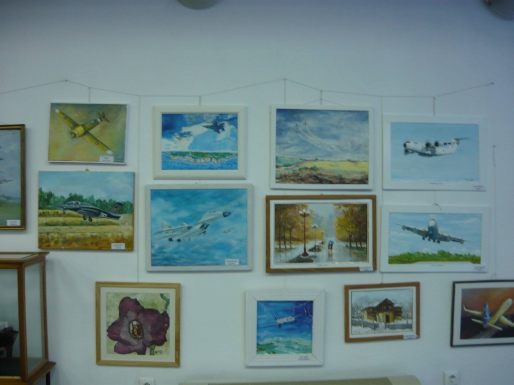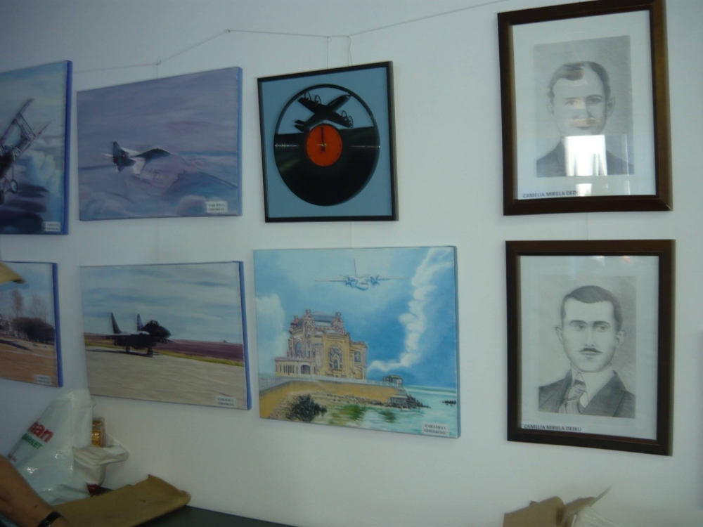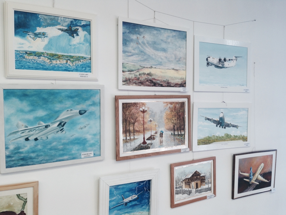O mulțime de lucrări - aproape 50 - au trezit interesul și încântarea primilor vizitatori ai acestei expoziții de pictură, grafică și goblen, dedicată Zilei Aviației. De la portrete ale marilor aviatori români, precum Henri Coandă, Aurel Vlaicu, Traian Vuia, la avioane supersonice Mig 21, 23 și 29, creionate cu măiestrie de „amforiști”, pe pânză, hârtie sau chiar sub formă de machetă, lucrările expuse au fost studiate cu atenție de cei prezenți și imortalizate cu aparatele foto sau cu camerele foto/video ale telefoanelor. Au existat și lucrări interesante, de genul „marinelor” având în fundal aparate de zbor, pentru a se înscrie în tematica expoziției. Din loc în loc, frumoase peisaje de vară sau autumnale, cât și picturi cu flori au pus și mai bine în valoare această expoziție, prin contrast și culoare.