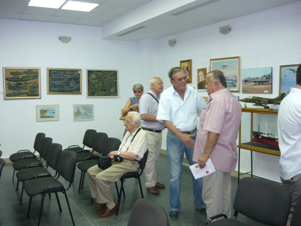 Iată ce ne-a declarat, din partea ARPIA, comandor în rezervă Toma Ioan: „Eu m-am ocupat de organizare, în principal. Noi avem un ciclu de expoziții din care face parte și aceasta. Anul trecut, am prezentat aviația în caricatură și am plecat cu un istoric al caricaturii din perioada interbelică, apoi din al Doilea Război Mondial și din perioada actuală, când am lucrat pe avioane subsonice și supersonice cu reacție. Aviația în pictură vine cu o linie a ceea ce fost până acum. Am găsit această soluție și cred că a fost extraordinară colaborarea cu pictorii de la „Amfora”. Am găsit acolo o mobilizare cum nu mă așteptam. Am încercat să îi duc în mediul aviatic și i-am luat să viziteze o bază aeriană, cea de la Mihail Kogălniceanu. La început, credeau, poate, că lucrurile nu sunt chiar atât de serioase, dar când au intrat și au văzut că acolo este o lume a zburătorilor, a luptătorilor aerieni, au spus că lucrurile stau diferit. De la cinci-șase tablouri, cu câte plecasem, am ajuns pe la 38, iar dacă îl pun și pe Tănase Gheorghe, vreo 46 de exponate. Am încadrat exponatele în ideea pentru care există, până la urmă, o aviație a unui stat: apărarea teritoriului, spațiului aerian și a bunurilor acestei țări”.