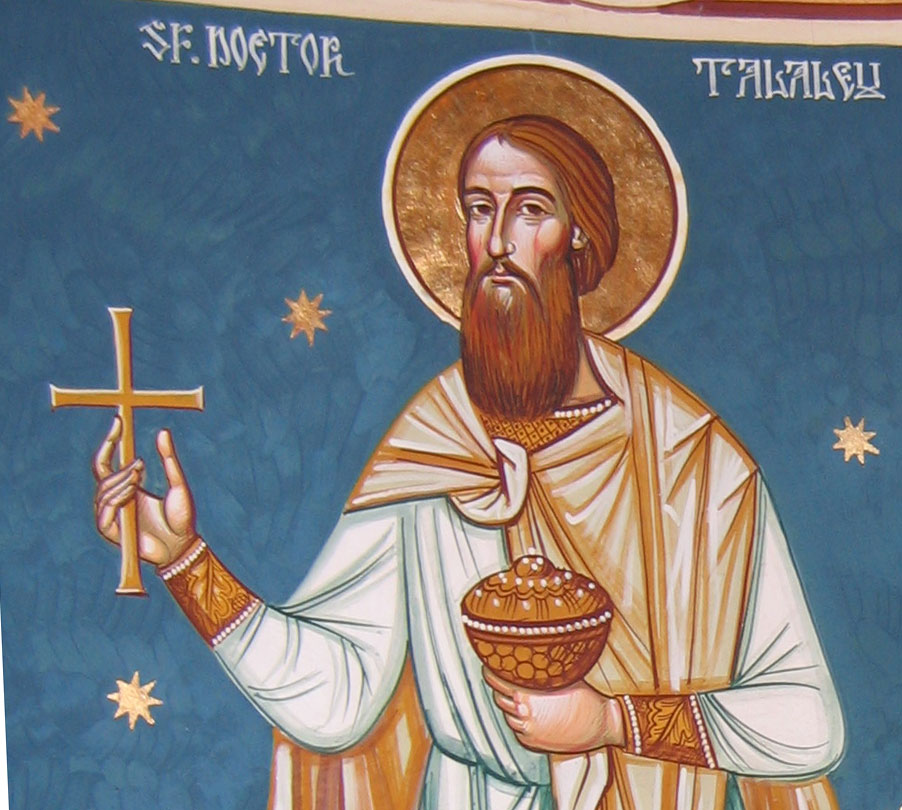 Sfântul Talaleu a trăit în timpul domniei împăratului Numerian (283-284). Tatăl său se numea Veruchie, iar mama sa, Romilia. Potrivit creştinortodox.ro, Talaleu ajunge medic, vindecând bolnavii fără a cere nimic în schimb. În momentul în care îl primeşte pe Hristos în viaţa sa, judecătorul le porunceşte celor doi călăi, Alexandru şi Asteriu, să-i perforeze genunchii şi să-l atârne de un copac. Dumnezeu i-a orbit pe torţionari, iar aceştia, în loc să-l mutileze pe Talaleu, au găurit o scândură. Cei doi călăi au fost biciuiţi, pentru că s-a crezut că au făcut acest lucru intenţionat. Se spune că, în urma acestei minuni, cei doi au devenit creştini şi au fost ucişi prin tăierea capului.