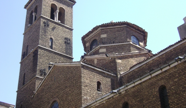 Actualul edificiu amintește de modelul bazilicilor din nordul Italiei, fiind lucrată în cărămidă aparentă, în stil romanic, specific secolului al XIII-lea. De asemenea, interiorul bazilicii este din cărămidă aparentă, ceea ce nu mai necesită tencuirea bisericii.