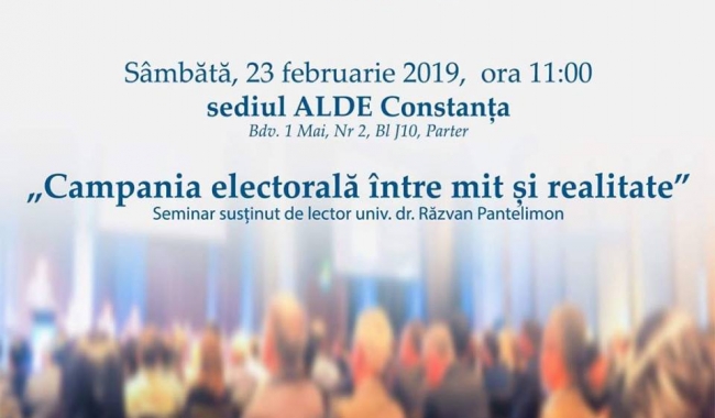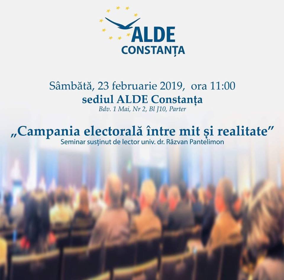 Evenimentul „Campania electorală între mit și realitate” face parte din seria seminariilor politice care debutează în cadrul campaniei „Școala politică de la Marea Neagră”, inițiată de ALDE Constanța, seminarii care se vor desfașura pe întreg parcursul anului 2019.