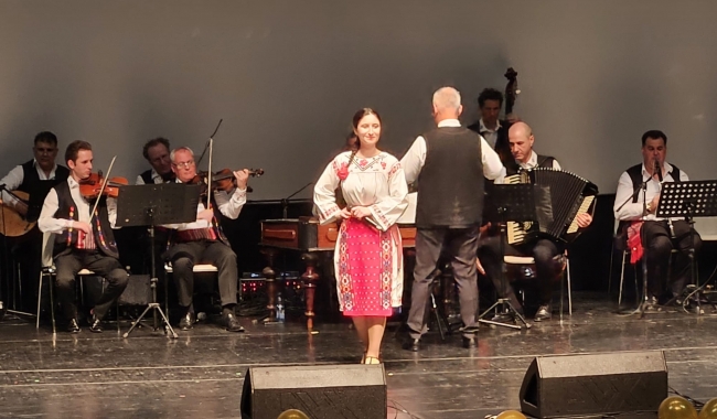 Frumusețea cântecelor populare dobrogene, cât și a dansurilor și costumelor tradiționale a delectat audiența în prima parte a spectacolului, iar Valentin Sanfira, invitatul special al serii, un oltean cu drag de folclor, cum a fost prezentat, a ridicat publicul în picioare cu energia sa și a pieselor ritmate pe care le-a interpretat.