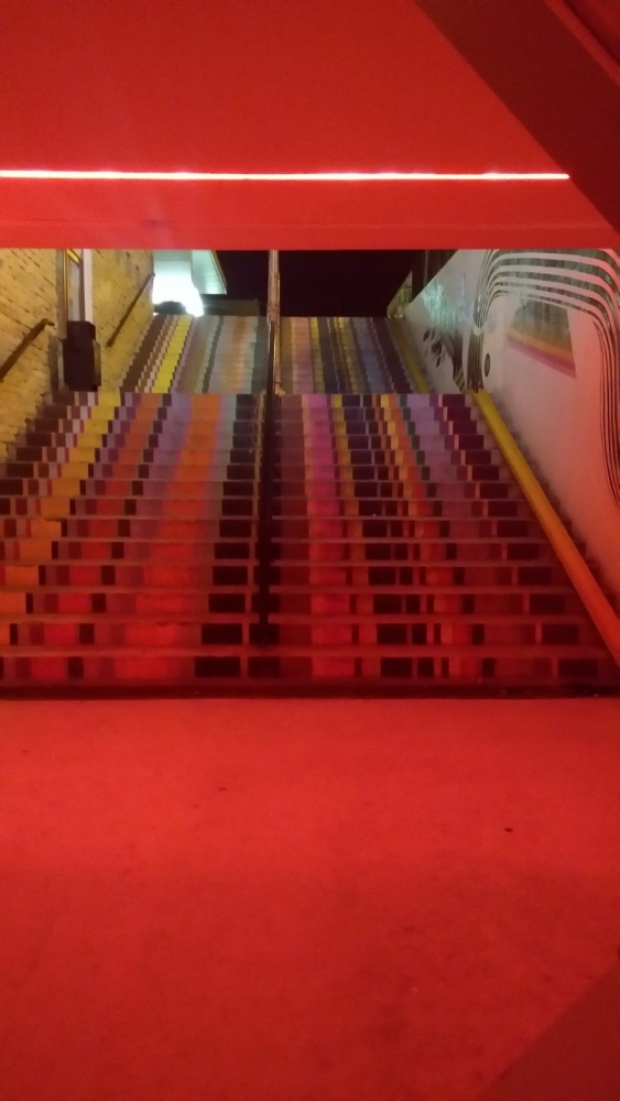 Constanța a iluminat pasajul din strada Stefan cel Mare, marți seară, 24 martie 2020. Această activitate a fost realizată de trei voluntari și este susținută de Fundația Romanian Angel Appeal, Asociația culturală Wild Art și Primăria Constanța.
