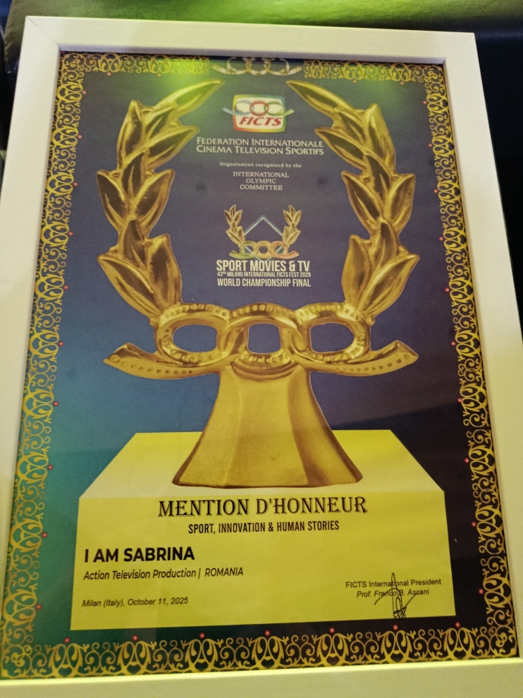 Echipa formată din constănțenii Alina Cosmoiu-Malciu și Bogdan Malciu, cunoscuți oameni de televiziune de la malul mării, a fost premiată în cadrul „Sport Movies & TV 2025” – a 43-a ediție a Festivalului Internațional de Filme de la Milano. Evenimentul, reprezentând Finala Mondială a World FICTS Challenge 2025, s-a desfășurat în Sala de spectacole Auditorium Testori de la Palazzo Lombardia, în perioada 07 – 11 octombrie 2025. Alina Cosmoiu-Malciu, cunoscută publicului pentru îndrăgita emisiune pe care a realizat-o mulți ani, la Neptun TV, „Bărcuța cu povești” și Bogdan Malciu, de asemenea, operator video și om de televiziune care a activat în cadrul mai multor posturi TV, au fost singurii reprezentanți ai României la celebrul festival din Milano. Cei doi au fost declarați câștigători la secțiunea SPORT, INNOVATION & HUMAN STORIES, obținând MENTION D'HONNEUR, cu o producție a Action Television Production din Constanța, un reportaj extraordinar despre gimnasta Sabrina Voinea.