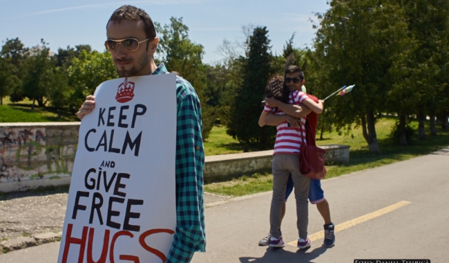 Campania „Free Hugs”/ „Îmbrățișări gratuite”, care a luat startul vineri, în fața City Park Mall, le-a înfrumuseţat ziua constănţenilor prinşi în grijile cotidiene. Chipurile senine, zâmbetele inocente şi îmbrăţişările pline de căldură ale organizatorilor au dat culoare oraşului de la malul mării.