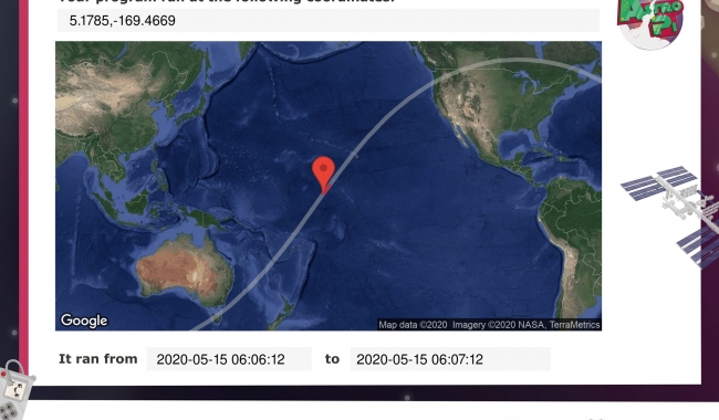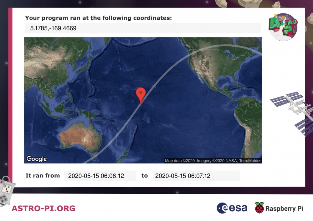 Programul creat de ei a afișat, alături de mesajul cerut de către organizatori, și steagul României și a rulat în data de 15 mai 2020, când ISS se afla deasupra Oceanului Pacific.