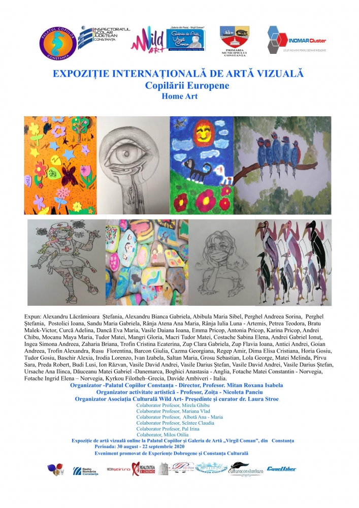 Duminică, 30 august, 2020 pe simezele virtuale ale Palatului Copiilor din Constanța https://ro-ro.facebook.com/pages/category/Education/Palatul-Copiilor-Constanta-1977834722445621/și pe cele ale Galeriei de Artă Virgil Coman https://www.facebook.com/Galeria-de-Arta-Virgil-Coman-1889146844434561/ s-a inaugurat expoziția internațională Copilării europene.