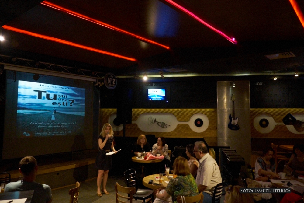 Incursiune fascinantă în universul astral, cât și al psihicului uman Invitata Ancăi Mizumschi a fost astrologul lect. univ. dr. Alexandra Coman, manager general Roastrolog, iar dialogul purtat de cele două specialiste în domenii aparent diferite, însă între care există o legătură fundamentală de de mii de ani, i-a făcut pe cei prezenți să participe activ cu numeroase întrebări. Cele două specialiste au răspuns curiozității publicului, după ce au lansat spre dezbatere o serie de subiecte menite, într-un final, să-i facă pe cei prezenți să se cunoască mai bine, să sondeze în adâncurile naturii umane. Astfel, s-a vorbit despre conștient, preconștient și inconștient, despre inconștientul colectiv și despre arhetipuri, ca discuția să ajungă într-un alt punct incitant: inconștientul cosmic și simbolurile cu care interacționăm zi de zi, cele mai comune, mai răspândite și mai accesibile fiind semnele astrologice. Indiferent de zodie - deși în clubul Doors și-au dovedit majoritatea zodiile de aer - cei din sală au manifestat un viu interes pentru ceea ce aflau, poate, pentru prima oară, despre natura umană, inconștientul cosmic, despre conștientizarea unor atitudini și comportamente care ne diferențiază sau care ne sunt comune ca popor, precum fatalismul mioritic specific nouă, românilor. De fapt, toate subiectele aduse în atenție de Anca Mizumschi și Alexandra Coman au condus, după inițierea și familiarizarea publicului cu câteva din noțiunile de bază din psihologie și astrologie, către tema principală a conferinței, și anume ce putem face pentru a schimba această atitudine fatalistă.
