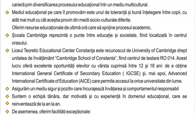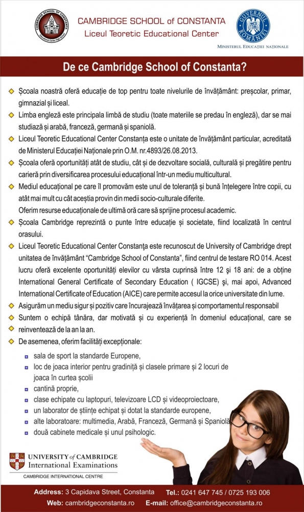 CAMBRIDGE SCHOOL OF CONSTANTA, ETALON AL ÎNVĂȚĂMÂNTULUI DE TOP