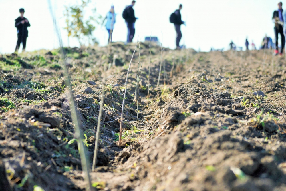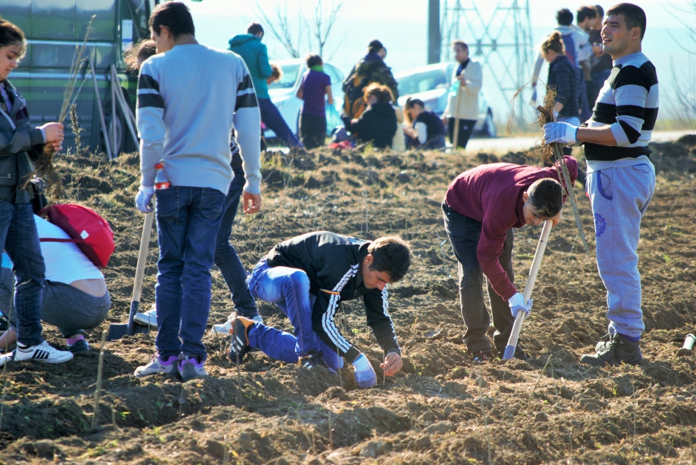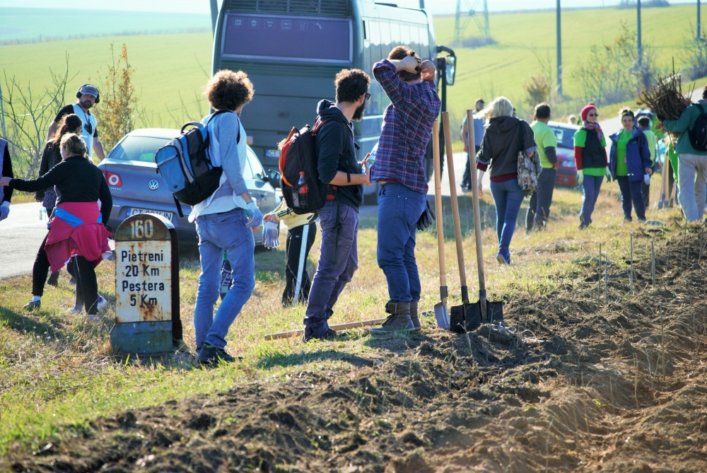 În fine, cam după o oră de la ajungerea noastră acolo, toată lumea avea tot ce era necesar ṣi mai ṣtia ṣi ce are de făcut, aṣa că ne-am pus pe treabă. Am reuṣi ṣi eu, printre fotografii, să plantez câṭiva puieṭi. Aṣa, cât să pot spune că am pus ṣi eu mâna ṣi pe cazma ṣi pe puieṭi.