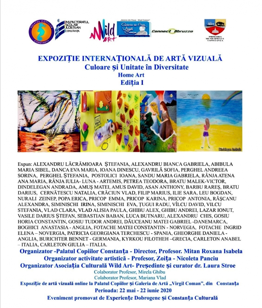 Prima expoziție de artă internațională  poate fi vizionată începand cu 22 mai 2020 „Culoare și Unitate în Diversitate” pe simezele virtuale  ale Galeriei de Artă „Virgil Coman” https://www.facebook.com/Galeria-de-Arta-Virgil-Coman-1889146844434561/ si pe pagina culturala a Palatului Copiilor, Constanța  https://ro-ro.facebook.com/pages/category/Education/Palatul-Copiilor-Constanta-1977834722445621/.