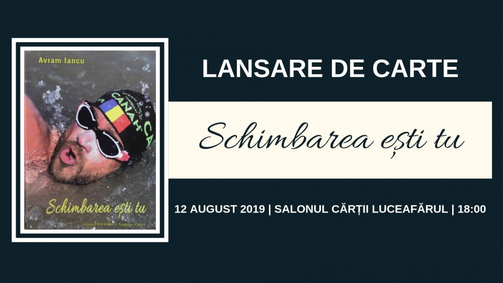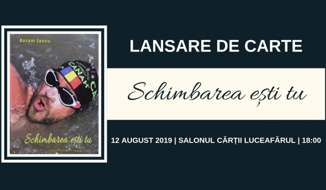 Faimosul înotător - bibliotecar Avram Iancu va lansa, peste doar câteva zile, volumul motivațional "Schimbarea ești tu", o carte care își va găsi, cu siguranță, un loc de cinste în bibliotecile multora dintre noi. Evenimentul organizat de Compania de Librării București, în colaborare cu Avram Iancu, românul care a traversat înot Canalul Mânecii, Dunarea și Marea Neagră, se va desfășura pe 12 august 2019, de la ora 18:00, în Capitală, la Salonul Cărții Luceafărul, din b-dul Unirii, nr. 10.