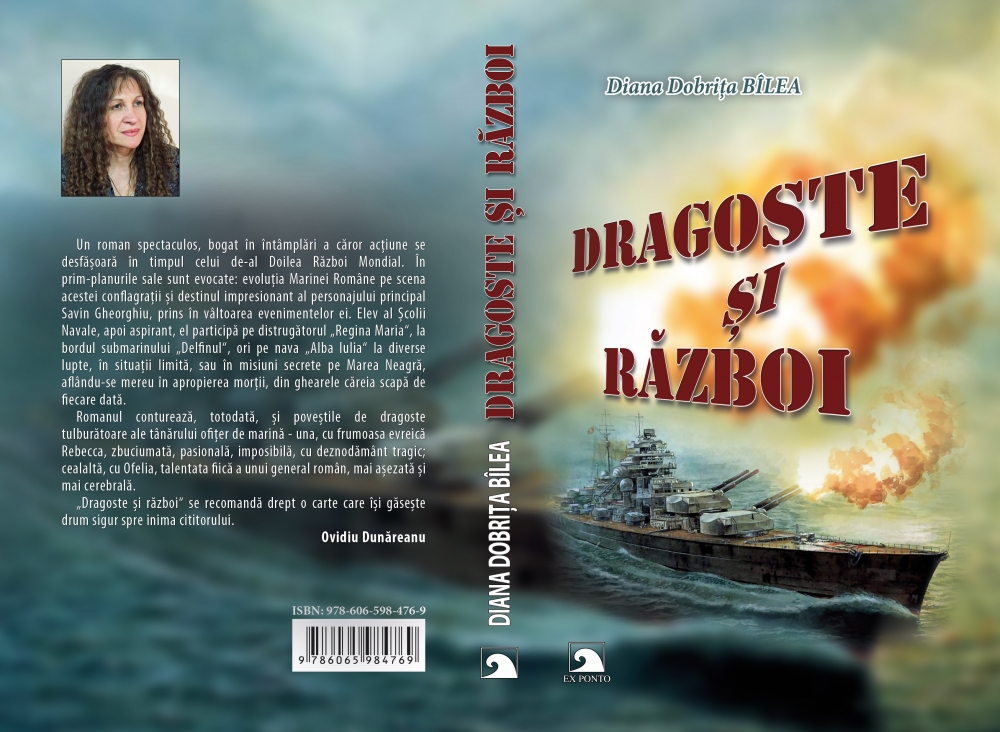 Bun regăsit, prieteni! Semnalăm apariția unui excelent roman cu tentă istorico-sentimentală, „Dragoste și Război”, apărut la Editura Ex Ponto, Constanța, în 2016, scris de o autoare pe care am mai prezentat-o la rubrica noastră de carte. Autoarea este Diana Dobrița Bîlea, care ne oferă un nou volum consistent introducându-ne în lumea literaturii, propunându-ne o călătorie prin universul iubirii, al prejudecăților și al războiului. Plasată în perioada celui de Al Doilea Război Mondial, acțiunea romanului se desfășoară la Constanța și suprapune destinele personajelor: Savin Gheorghiu, Rebecca, Ofelia Lăzăroiu, Cristiana Vasilescu (văduva disponibilă a unui colonel), Olga Teodorovna, o frumoasă și sentimentală agentă NKVD.