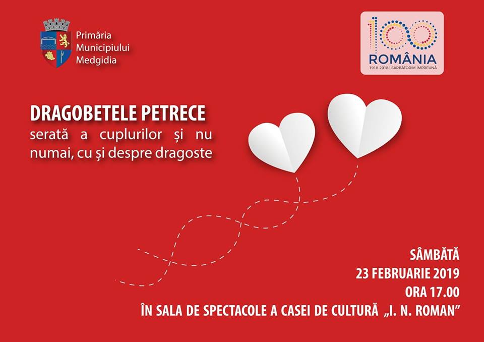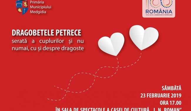 Pentru că încă ne aflăm în acea perioadă a anului ce stă sub semnul dragostei și al sărbătorilor dedicate tuturor îndrăgostiților, Primăria Municipiului Medgidia va organiza o serată specială, cu ocazia sărbătoririi Zilei Dragobetelui. Evenimentul la care sunt invitați... îndrăgostiții se va desfășura sâmbătă, 23 februarie 2019, de la ora 17.00, în sala de spectacole a Casei de Cultură "Ioan N.Roman".