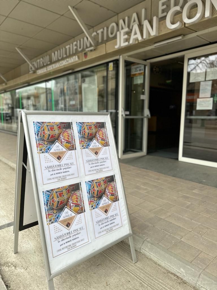 Spațiul expozițional al Centrului Multifuncțional Educativ pentru Tineret ”Jean Constantin” a găzduit, joi, 6 aprilie 2023, o manifestare cultural-artistică deosebită, organizată de Centrul Cultural Județean Constanța ”Teodor T. Burada”, cu prilejul Sfintelor Sărbători Pascale. Prezentat sub titulatura ”SĂRBĂTORILE PASCALE ÎN OBICEIURILE POPULARE”, evenimentul a fost o ocazie pentru cei prezenți de a afla câteva din tainele încondeierii ouălor - obicei străvechi de milenii, alături de prof. dr. Mariana Momciu din cadrul Școlii Gimnaziale nr. 18 ”Jean Bart” din Constanța, dar și de elevii pe care îi coordonează, în cadrul proiectului cultural-artistic Tradiții Dobrogene.