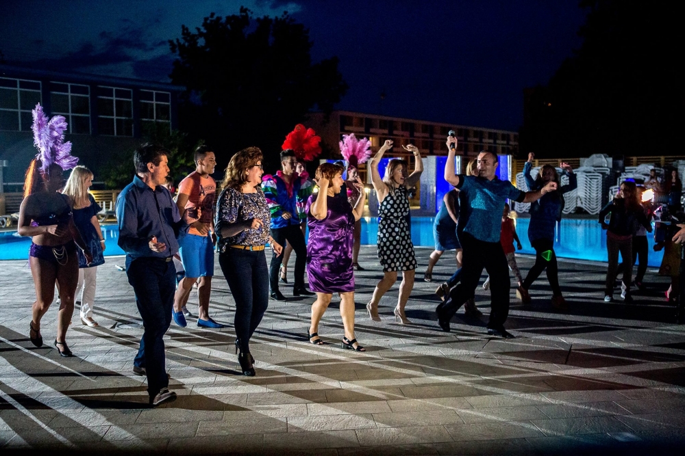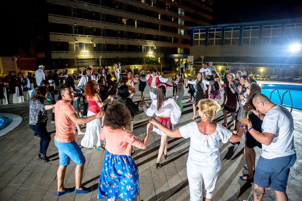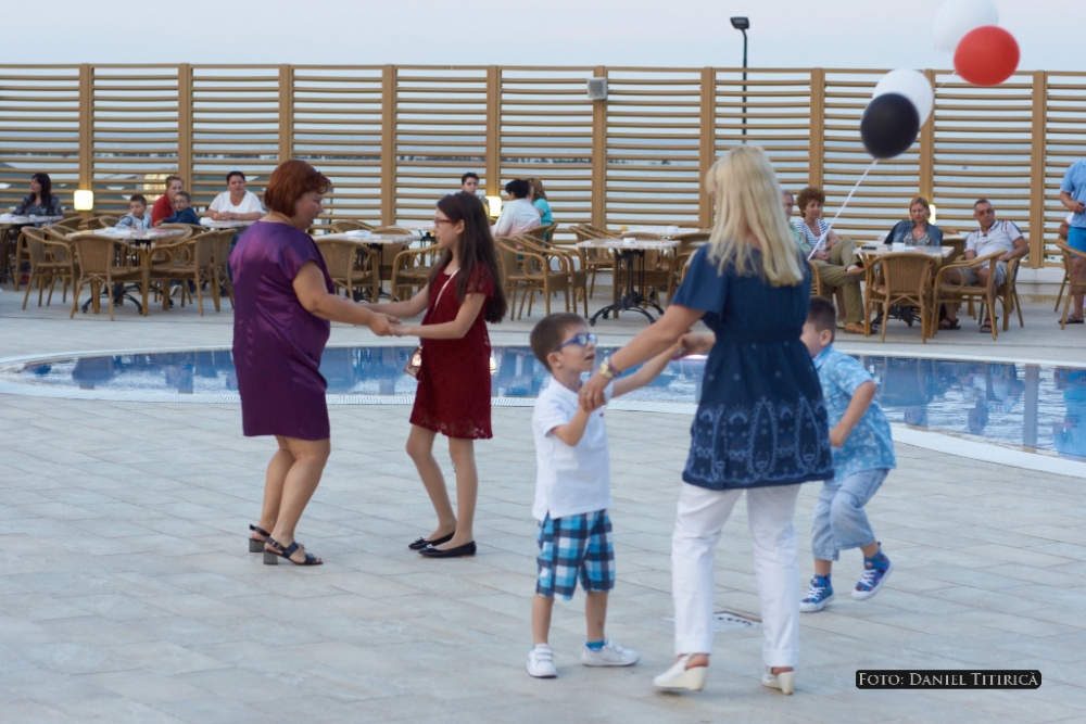 Marian Cristea și Salsa Friends Constanța Seara a fost animată de cunoscutul instructor de salsa și de Zumba Fitness, Marian Cristea, care a fost și prezentatorul evenimentului. Invitații speciali ai party-ului, dansatorii de la Salsa Friends Constanța, au făcut un show impresionant, aplaudat cu căldură de toți cei prezenți. În curând, cam toată lumea, cu mic, cu mare, era la dans, fie pe ritmuri latino, fie pe muzică populară românească, hora tradițională ridicând rapid mesenii la joc! S-a dansat într-o voie bună generală, turiștii au socializat și au admirat decorul în care s-a desfășurat evenimentul, apreciind inițiativa gazdelor de la Aurora. Dealtfel, cei mai mulți erau clienți fideli ai hotelului, după cum ne-au și mărturisit, preferând să vină la Aurora în fiecare vacanță de vară, de ani buni, datorită condițiilor de cazare și a ospitalității gazdelor.
