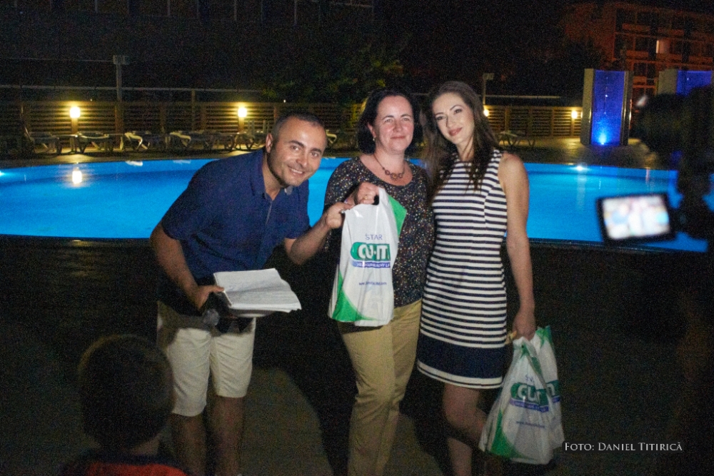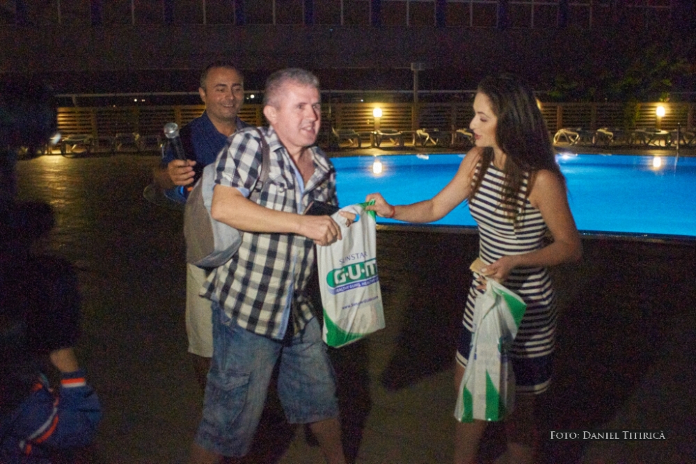 Surprizele tombolei: ochelari de soare de la Opti Eni și produse de igienă orală de la Sunstar GUM Întreaga seară a fost presărată cu surprize, cum ar fi tombola cu premii organizată de Aurora, cu sprijinul sponsorilor care au oferit turiștilor premii consistente. Astfel, printre cei prezenți au existat și câțiva fericiți câștigători. La tombolă s-au acordat cinci premii constând în ochelari de soare de firmă, cu lentile polarizate, împreună cu câte un produs special de curățare Lens Cleaner, oferite de Opti Eni Constanța, prin patronul și managerul Enise Baci, una dintre femeile de afaceri de succes ale Constanței. O altă surpriză a serii a constituit-o cele cinci premii extrase la tombolă constând în produse de igienă orală Sunstar Gum în România. Acestea au fost acordate de o altă antreprenoare de succes, Oana Mina, General Manager Spotlight, unic distribuitor al produselor de igienă orală Sunstar Gum în România. Dealtfel, pe toată perioada verii, în zilele de luni, miercuri și vineri, între orele 10.00-12.00, tot la hotelul Aurora, Oana Mina va oferi celor mai mici dintre turiști produse de igienă orală de la GUM, speciale pentru grupele mici de vârstă.