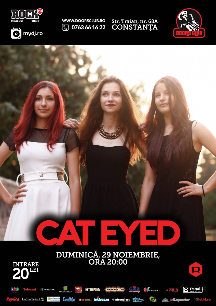 Clubul Doors îi așteaptă pe constănțenii pasionați de muzică live de calitate la o seară-fantezie cu trio-ul Cat Eyed. Evenimentul este programat duminică, 29 noiembrie, de la ora 20.00, iar prețul biletelor este de 20 de lei.