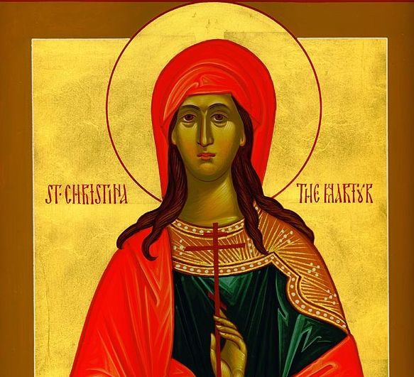 Sfânta Hristinas-a născut în cetatea Tir, în timpul împăratului Septimiu Sever. Potrivit crestinortodox.ro, la 12 ani, Sfânta Hristina, fiica lui Urban, a fost închisă de tatăl ei într-un turn, pentru că era foarte frumoasă. Tatăl său îşi dorea să o ţină captivă, până la împlinirea vârstei de 18 ani. Nemulţumită de credinţa în idoli, tânăra s-a rugat la Dumnezeu, iar acesta i-a trimis un înger care a călăuzit-o, descoperindu-i tainele dumnezeieşti.