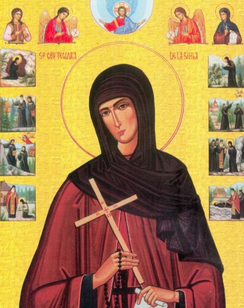 Cuvioasa Teodora şi-a dedicat viaţa Domnului După un timp, Cuvioasa Teodora se mută din chilie în peștera de alături, unde rămâne până la trecerea în nefiinţă, ostenindu-se în post și rugăciune, pentru ea și pentru întreaga lume. Hrana şi-o procura din pădure, mâncând fructe sau iederă ce creștea pe stâncile Sihlei, numită iarbă dulce sau măcrișul Sfintei Teodora.