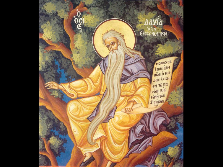 Sfântul Cuvios David s-a născut în Tesalonic și a trăit în secolul al VI-lea. Potrivit crestinortodox.ro, David s-a călugărit de tânăr, la Mănăstirea „Sfinții Mucenici Teodor și Mercurie”. După un timp, și-a făcut din creanga unui migdal loc de pustnicie. A îndurat ploile, zăpezile, căldura și alte greutăți cu multă răbdare, vreme de trei ani, până când îngerul Domnului i-a cerut să se mute într-o chilie. Pentru viața sa curată, a primit darul de a izgoni pe diavoli și de a vindeca pe bolnavi.