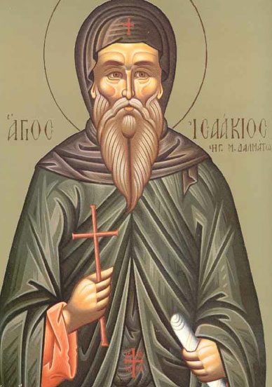 Sfântul Isaachie a trăit în secolul al IV-lea. Pentru că împăratul Valens Arianul (364-378) prigonea religia ortodoxă, pustnicul Isaachie a plecat în Constantinopol, pentru a-i întări pe creștini. Potrivit crestinortodox.ro, Sfântul Isaachie este rugat de împăratul Teodosie cel Mare să rămână în Constantinopol. Aristocratul Saturnin a zidit o sfântă mănăstire pentru Avva Isaachie, unde a viețuit până la moartea sa, săvârșind multe minuni. Înaintea morții lui, Sfântul Isaachie l-a numit pe ucenicul său, Dalmatus, stareț în locul lui. De la numele noului stareț, mănăstirea a luat, mai târziu, numele de Mănăstirea Dalmaților.