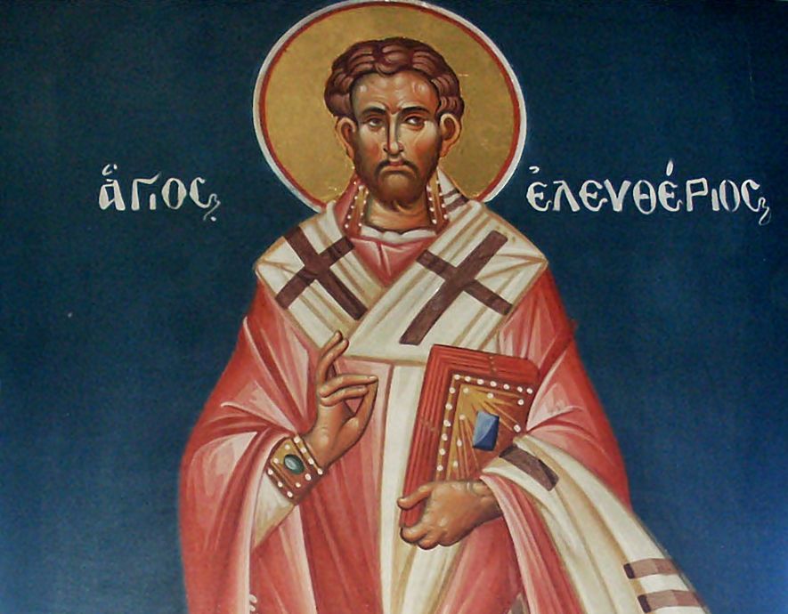 Născut la Roma, într-o familie de nobili creștini, Elefterie a rămas orfan de tată încă de mic. Mama sa, Antia, botezată chiar de Sfântul Apostol Pavel, l-a încredințat spre creștere și educare lui Anichit, Episcopul Romei. Datorită harului său și credinței fierbinți în Dumnezeu, episcopul l-a hirotonit pe Elefterie diacon la vârsta de 15 ani, apoi preot, la 18 ani și episcop al Iliricului, la 20 de ani.
