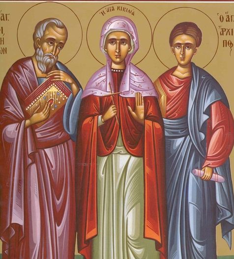 Sfântul Arhip a fost episcop în cetatea Colose, din Frigia. În ceea ce-l privește pe Sfântul Filimon, acesta a fost convertit la creștinism de Sfântul Apostol Pavel și în casa lui se adunau creștinii, pentru a participa la rugăciunea comună. Sfânta Apfia, soția lui Filimon, rânduia biserica din casa ei.
