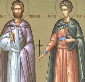 Sfinții Fotie și Anichit au trăit în vremea împăratului Dioclețian. Potrivit crestinortodox.ro, Anichit, unul din demnitarii cetății Nicomidia, a mărturisit că era creștin în momentul în care s-au declanșat torturile împotriva creștinilor. Deși i se tăiase limba, Anichit nu rămâne lipsit de grai, mărturisind, spre uimirea împăratului, cât de mici sunt zeii lui în faţa lui Hristos.