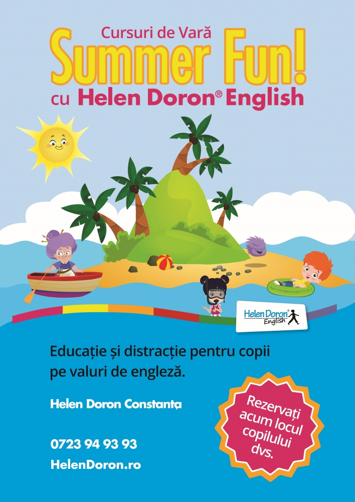 Dragi copii și părinți, Helen Doron English Constanța vă pregătește o experiență de vacanță atractivă, distractivă și educativă: cursurile de vară susţinute cu pasiune de profesorii special pregătiți să predea limba engleză pentru copii.