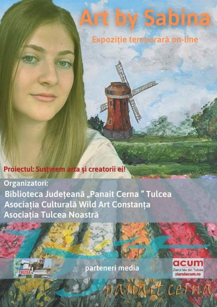 Organizată de Biblioteca Județeană din Tulcea, în parteneriat cu Asociația Culturală ”Wild Art” Constanța, expoziția ”Art by Sabina” face parte din proiectul cultural „Susținem arta și creatorii ei”.