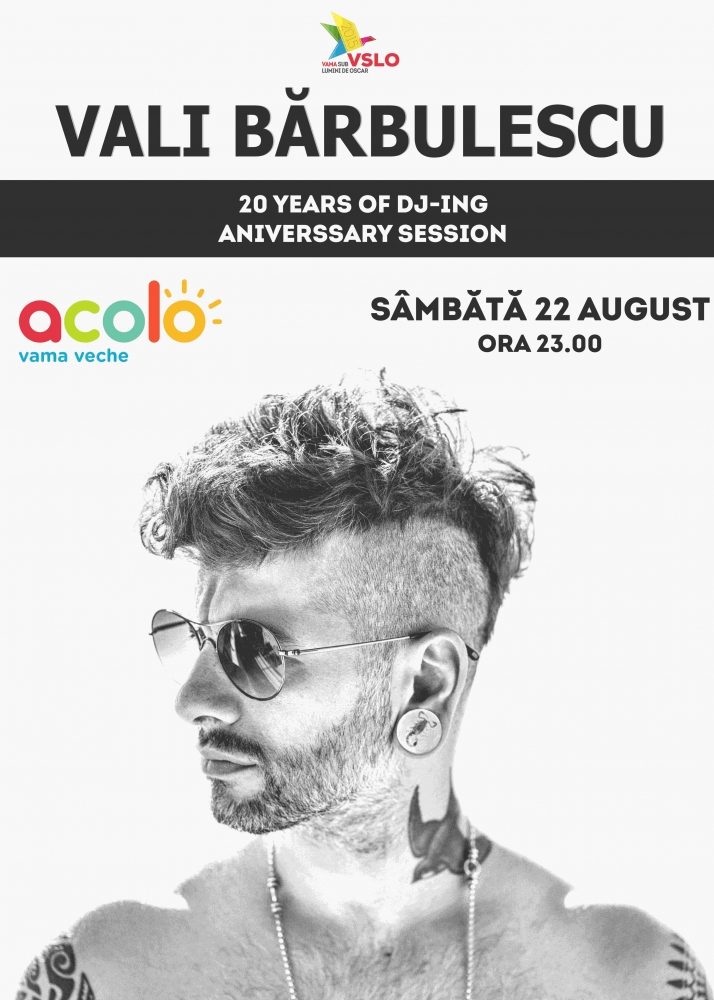 Vali Bărbulescu va sărbători alături de participanții la festival, pe plaja de la „Acolo Bar", 20 de ani de DJ-ing, pe 22 august.