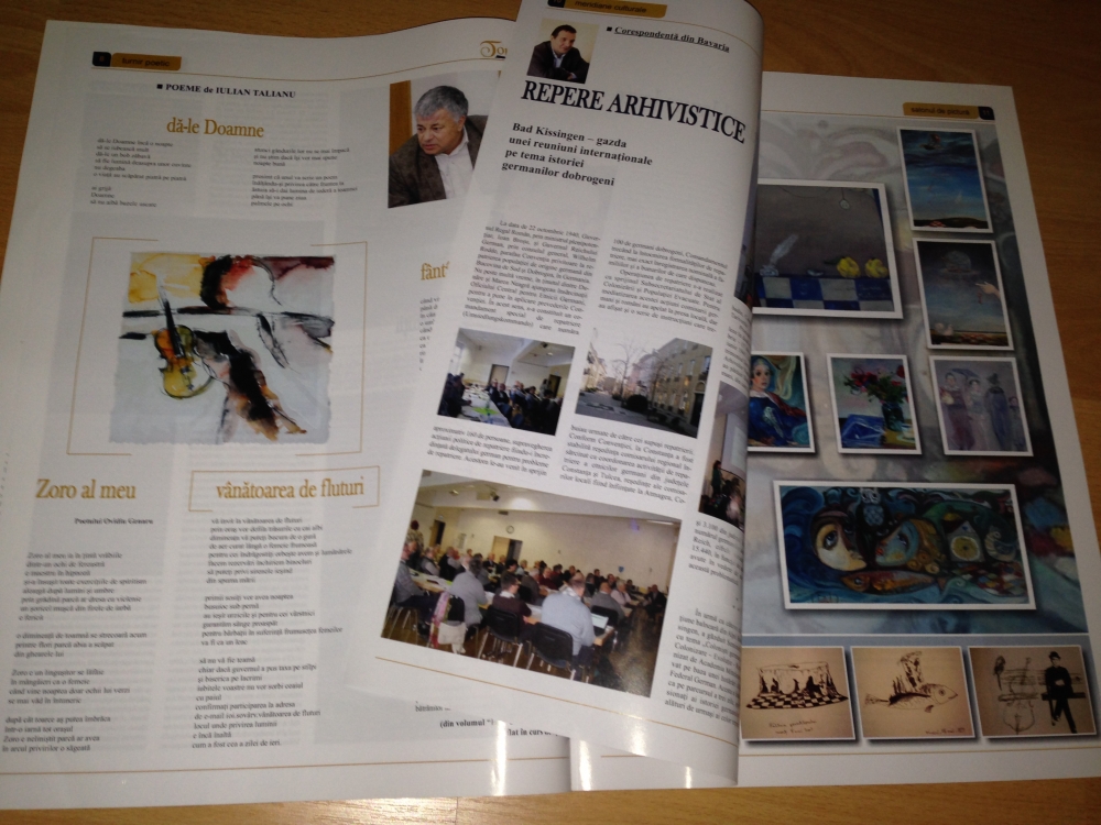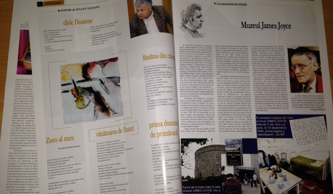 De la Muzeul James Joyce la „Callatis” Publicația al cărei fondator este poetul Iulian Talianu, membru al Filialei Dobrogea a Uniunii Scriitorilor din România, oferă, și de această dată, subiecte interesante, aduse în atenție de redactorii și colaboratorii săi. Remarcăm, printre altele, o corespondență din Dublin semnată de George Stoian, despre Muzeul James Joyce, un text interesant și imagini din turnul de la malul mării în care a locuit celebrul scriitor și poet irlandez. Dealtfel, revista mai include și alte articole menite să suscite interesul publicului cititor, precum cel pe care îl semnează șeful Muzeului Callatis din cadrul Complexului Cultural Mangalia, cercetător științific Marcel Colesniuc, referitor la unicul papirus antic descoperit pe teritoriul României și readus de la Centrul de conservare I. E. Grabar din Moscova, după o jumătate de secol, la muzeul callatian.