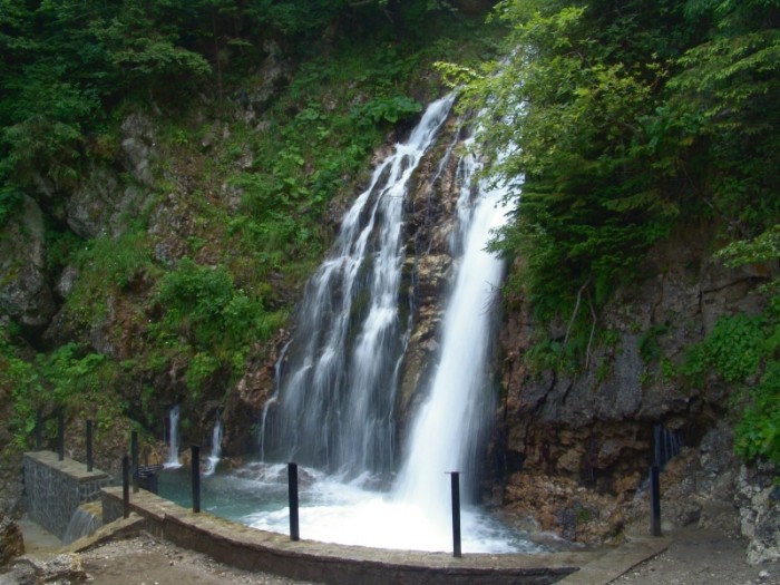 3. Cascada Duruitoarea Una din minunile naturii poate fi considerată și Cascada Duruitoarea, din Masivul Ceahlău. Maiestuoasa cascadă din Carpați este considerată monument al naturii, cu regim de arie protejată. Accesul se poate face prin trei trasee turistice bine amenajate, care pleacă din stațiunea Durău. Traseele sunt de dificultate medie și mică si pot fi efectuate în două ore. Este o cascadă extrem de spectaculoasă atât datorită zgomotului puternic pe care îl face când debitul de apă este mai mare, cât și pentru faptul că are o coborâre de 25 de metri, întreruptă uşor, în apropiere de bază, unde finalul deosebit al curgerii în stil fuior arată mai degrabă ca un evantai.