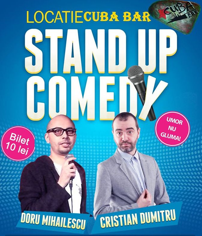 Amatorii de stand up comedy sunt invitați, sâmbătă, 1 august, de la ora 21.30, la terasa Cuba Bar&Club din Satul de Vacanță, pentru o porție zdravănă de râs. Show-ul de stand up comedy va fi susținut de unul dintre „pionierii" acestui gen de umor la noi în țară, Cristian Dumitru, alături de Doru Mihăilescu, zis și Doru Vibratoru, un oltean simpatic, plin de umor. Prețul biletelor este de 10 lei, iar organizatorii promit „un show interactiv plin de umor, la care vei râde până te vor durea fălcile”. Aceștia mai... avertizează, pe pagina de Facebook a Cuba Bar&Club: „Atenție! Tot ce spui în timpul spectacolului poate fi folosit împotriva ta”.