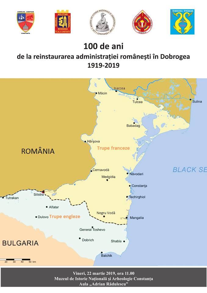 Este vorba despre Simpozionul prezentat sub titulatura "100 de ani de la reinstaurarea administrației românești în Dobrogea 1919-2019", organizat de MINAC, în colaborare cu Asociația Națională Cultul Eroilor „Regina Maria”, filiala Constanța, Muzeul Militar Național „Regele Ferdinand”, filiala Constanța și Asociația „Dobrogea Străbună”.