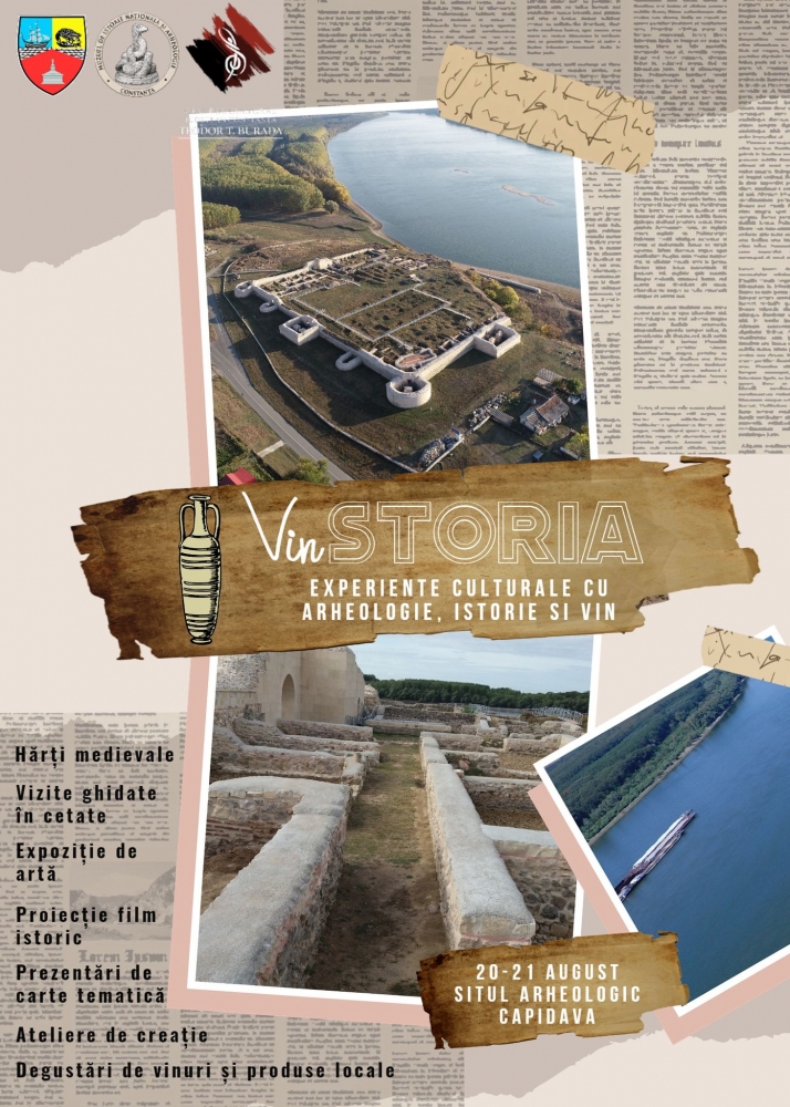Vinul și istoria, două dintre bogățiile permanente ale Dobrogei, vor conecta, în ultima lună a verii, publicul vizitator - localnici, turiști, tineri, seniori, specialiști sau nespecialiști, în cadrul unui eveniment inedit. Este vorba despre proiectul - pilot „VinSToria. Experiențe culturale cu arheologie, istorie și vin”, care urmează să se desfășoare în perioada 20 - 21 august 2022, la situl arheologic Capidava, în organizarea Consiliului Județean Constanța, prin Muzeul de Istorie Națională și Arheologie Constanța și Centrul Cultural Județean Constanța „Teodor T. Burada”.